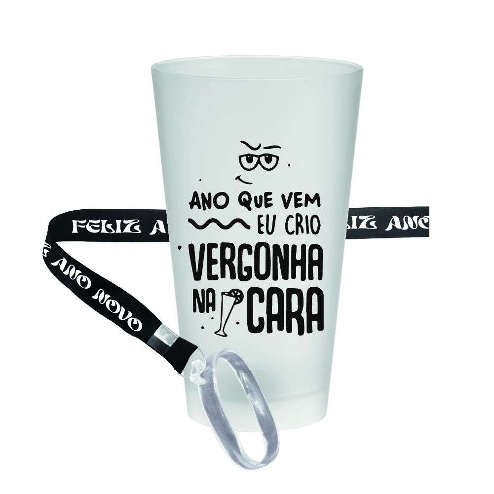Prático e sustentável, acompanha tirante resistente, permitindo curtir a festa com as mãos livres e sua bebida sempre por perto. Uma opção incrível para presentear convidados, montar kits comemorativos ou usar na virada!