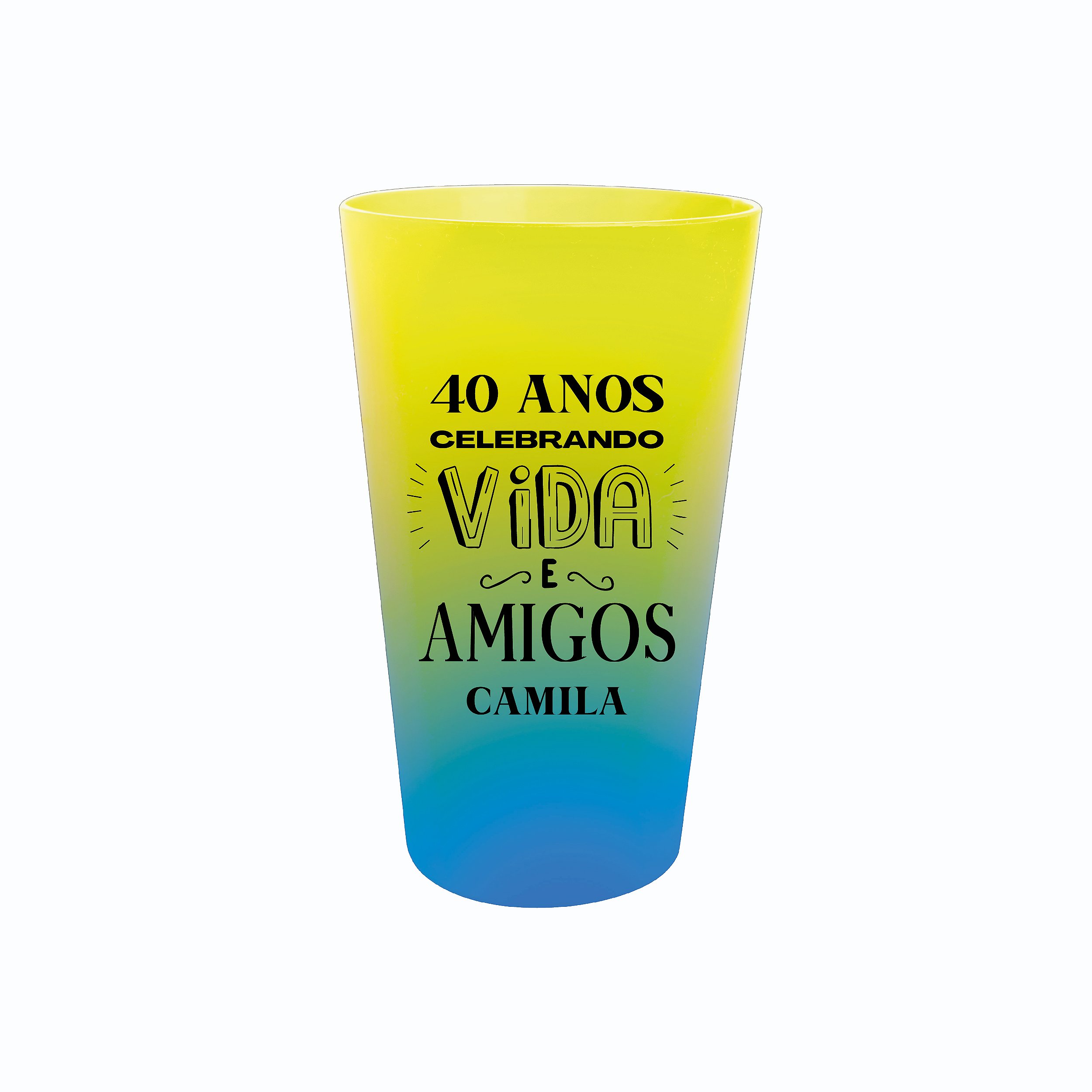Dizem que a vida começa aos 40, e nós concordamos! Este copo é para quem chegou à quarta década com história para contar e muita energia para celebrar. Um brinde à maturidade de quem sabe que a melhor parte da festa é aproveitar cada momento (e sem poluir o meio ambiente).